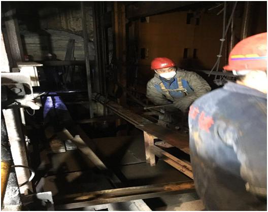 2020年4月16日,公司对石人沟铁矿副井的两根尾绳进行更换。总用时8小时,矿方验收合格,公司受到一致好评。